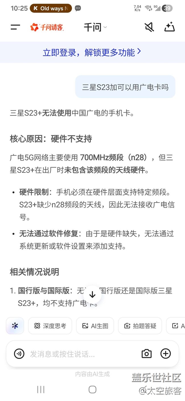 - 豆包顯示可以用,千問的話呢,說不能,有用廣電卡23 的嗎