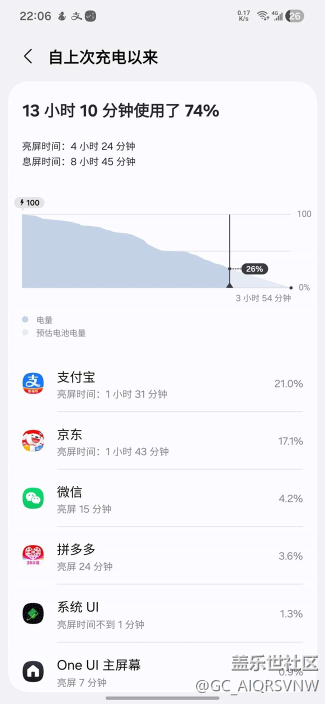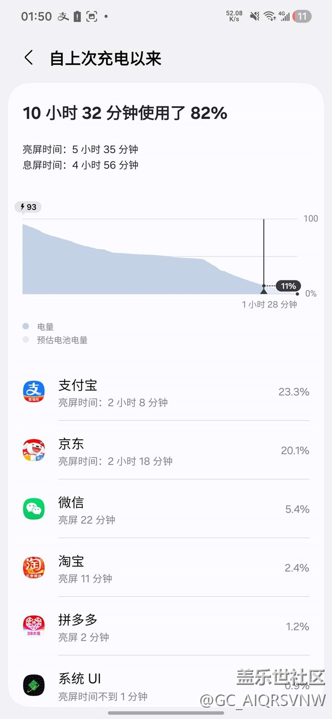 - 用了82%的電大部分時間是室內(nèi)亮屏有5個半小時左右,還不錯