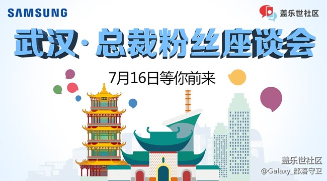 - 小伙伴們,在這炎熱的夏天,我要告訴社區(qū)湖北地區(qū)的各位星粉們一個更火熱的消息。2018年7月16日 三星電子移動事業(yè)部總裁——高東真先生將會到訪“江城”武漢,即將與武漢的粉絲們進(jìn)行一場零距離的精彩座談會。小伙伴們趕快動動手指踴躍報(bào)名吧,名額有限,我們等你來!【招募時間】即日起-2018年7月12日下午15:00(報(bào)名已截至)【時間地點(diǎn)】7月16日 (周一) 下午活動地點(diǎn)及到場時間 報(bào)名成功后短信通知【招募對象及名額】武漢當(dāng)?shù)胤劢z100人【報(bào)名費(fèi)用】完全免費(fèi)【活動內(nèi)容】現(xiàn)場的蓋樂世社區(qū)粉絲與三星高社長進(jìn)行互動,零距離面對面交流討論!【報(bào)名方式】直接在下方填寫報(bào)名內(nèi)容即可【特殊福利】凡報(bào)名成功的粉絲