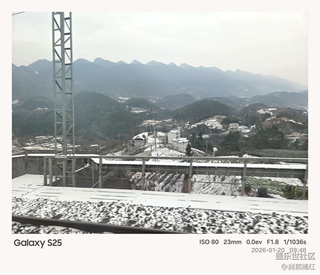 - 在火車上看窗外的落雪,一片白茫茫的景象。