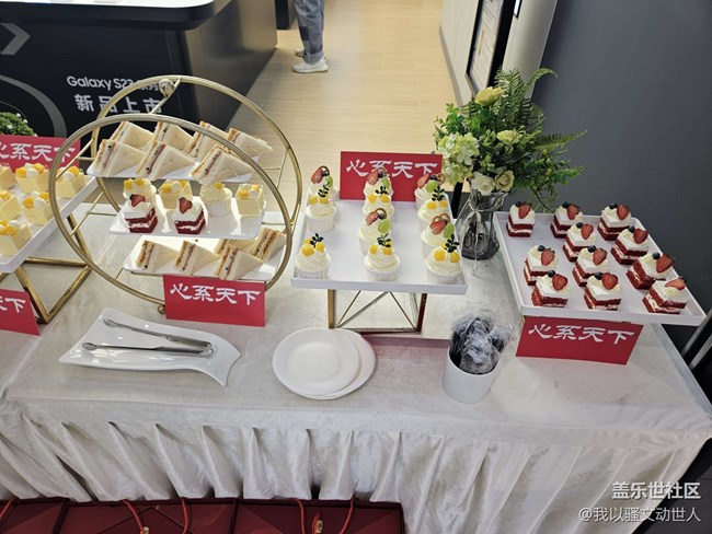 - 今天是端午最后一天,早就聽說了三星s23系列性能的強(qiáng)悍,奈何無緣親自擁有,受一眾機(jī)友之邀,百忙之中抽出時(shí)間參加三星+QQ飛車官方競(jìng)技賽,終于有機(jī)會(huì)能好好把玩把玩Galaxy S23ultra?;顒?dòng)地點(diǎn)在文景路三星授權(quán)體驗(yàn)店(漢神廣場(chǎng)店)門口擺放了很多好吃的進(jìn)門就是大家很熟悉的‘三星式展臺(tái)’,從新上的s23系列,W系列,tabs系列,watch5系列,一應(yīng)俱全,全都有展機(jī)。照例先對(duì)著W系列一通把玩,有個(gè)老哥喜提了新機(jī),讓我不經(jīng)感嘆星粉的實(shí)力竟然如此扎實(shí)。(好好努力,將來送自己一臺(tái))和各位小伙伴們打了招呼,一睹了西農(nóng)趙露思的芳容(確是美女,官方認(rèn)證)接下來就是休閑的切蛋糕時(shí)間。吃好了應(yīng)該怎么辦呢,