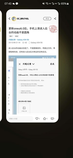 更新oneui6.0后,手機(jī)上滑進(jìn)入后臺(tái)的動(dòng)畫不是圓角