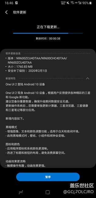 交流三星NOTE 更新安卓10