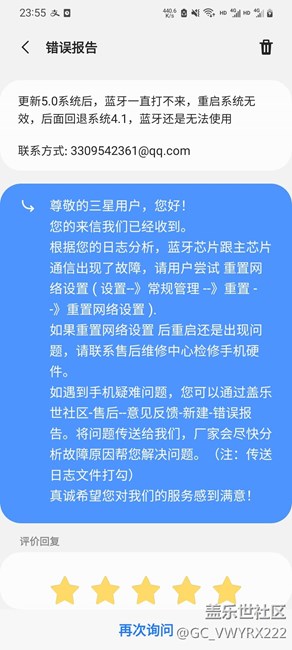 三星S20升級(jí)oneui5.0后藍(lán)牙打不開,系統(tǒng)掉幀卡頓
