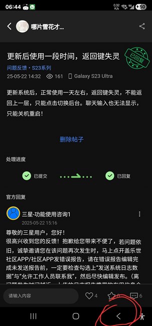 更新后使用一段時(shí)間,返回鍵失靈
