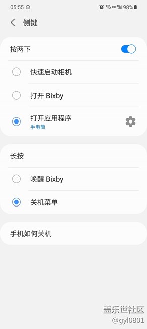 S21+手電筒能不能設(shè)置成其他手機,按兩下電源鍵就打開