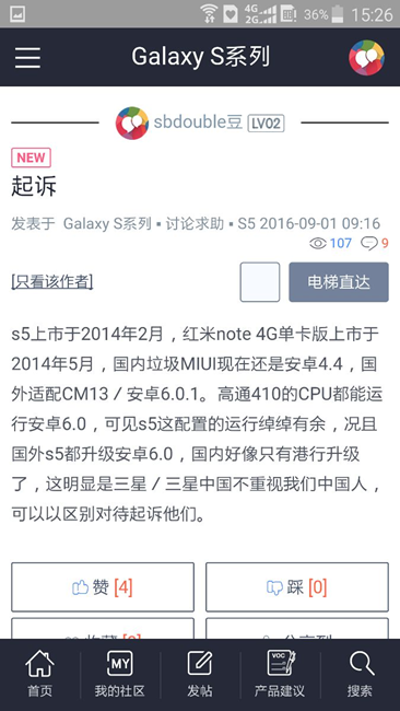 現(xiàn)在正式起訴你們,起訴稿我都寫(xiě)好了,剩下的就是交給我家的律師,讓他們修改一下,方便起訴。我說(shuō)的都是事實(shí),憑什么不能起訴你們?憑什么你們刪我帖子,扣我經(jīng)驗(yàn),星幣?就憑你們是這社區(qū)的老大嗎?你們有權(quán)刪帖,我就有權(quán)起訴,你們這屬于違約,違約就想堵我們用戶的嘴?還修改帖子,這是三星(中國(guó))做得出來(lái)的事嗎?未按帖子發(fā)布就封殺我們這些用戶,虧你們干得出來(lái)。