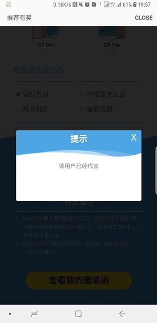 我之前生成過邀請函,并沒有分享,今天同事要買C8,可是我在哪里找我的邀請函呢,如果進(jìn)活動,就提示已經(jīng)代言過了。