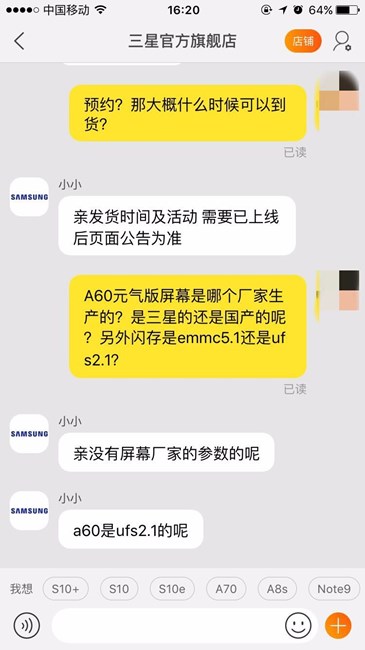 三星A60元氣版閃存是UFS嗎
