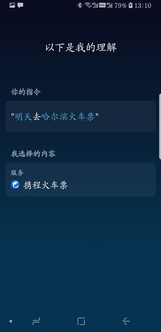 我的也是,能識別說的內(nèi)容,卡在那就不動了。說,查一下明天去北京的火車票,也是,一直卡在獲取位置的界面