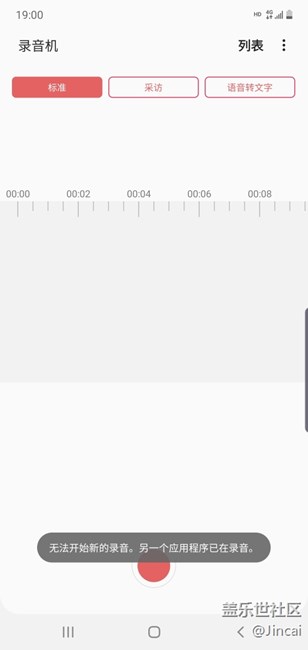 錄音機,顯示無法開始新的錄音,另一個應(yīng)用程序已在錄音