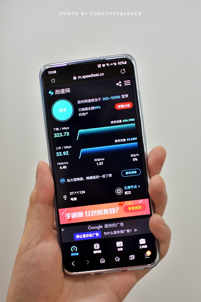 無(wú)線信號(hào):5G已經(jīng)是今年各廠商的標(biāo)配,博主的電信5G套餐要在5月1日才能生效,這里就不為大家?guī)?lái)5G信號(hào)的測(cè)評(píng)了,來(lái)說(shuō)說(shuō)Wifi信號(hào)。博主家用的電信500M帶寬,路由器TP-Link WDR7400千兆版,手機(jī)連接上路由器5g射頻后的測(cè)速結(jié)果如圖,上行峰值33,下行可以達(dá)到323,很可以了。不過(guò)Wifi偶爾出現(xiàn)上行突然停止的情況,持續(xù)大概10秒左右,不知道基友們有沒(méi)有遇到這個(gè)問(wèn)題,希望后面的固件更新能夠得到改進(jìn)。