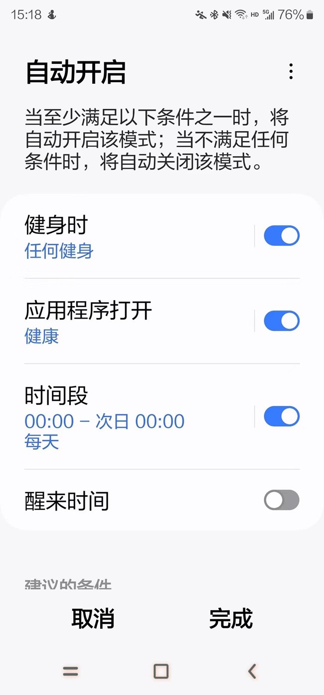 關(guān)于三星健康升級(jí)后。在特定時(shí)間可以計(jì)步,但是并不是所有時(shí)間計(jì)步,打開(kāi)《模式和日常程序》進(jìn)行操作,也沒(méi)有有效解決此問(wèn)題。