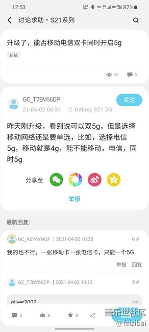 升級了,能否移動電信雙卡同時開啟5g