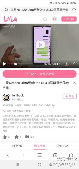 三星note20 ultra顯示偏色,拍照偏色望官方修復(fù)