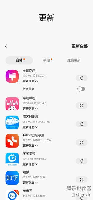 應用商店手動更新增添忽略更新的選項