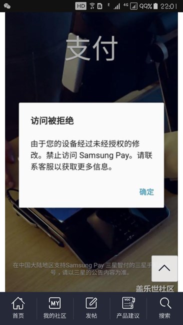 root過的機子進pay的提示(由于您的設備經(jīng)過未經(jīng)授權(quán)的修改.............) 而這個樓主說的是無法下載安裝什么的。。