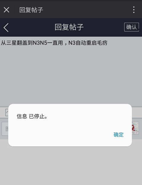 從三星翻蓋到N3N5一直用,N3自動重啟也遇到過,換N5后,升級出現(xiàn)了這些問題。圖片是回信息時又出現(xiàn)了。