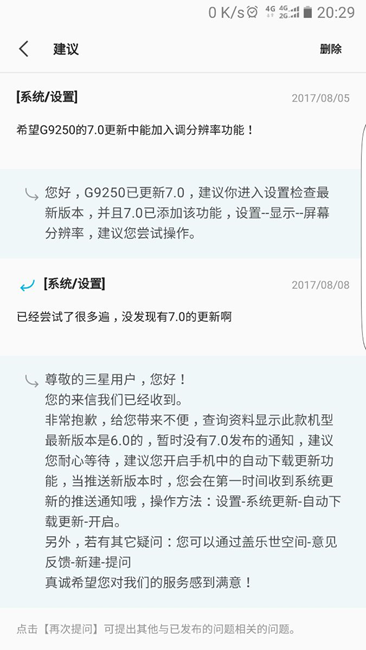 三星給S6e升級7.0的回復(fù)
