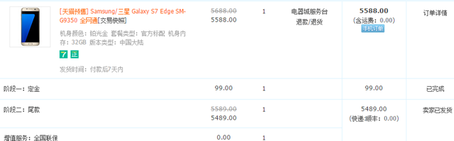 不分期,預(yù)定應(yīng)該是第二批,尾款12:02左右,金色,已發(fā)貨