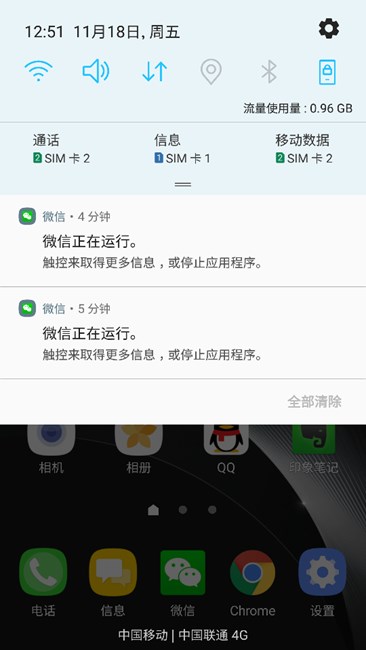 微信會(huì)出現(xiàn)在狀態(tài)欄,沒(méi)有辦法去清楚,問(wèn)題已經(jīng)反饋