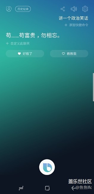對bixby說謝謝你愛我 看看他回復(fù)什么。