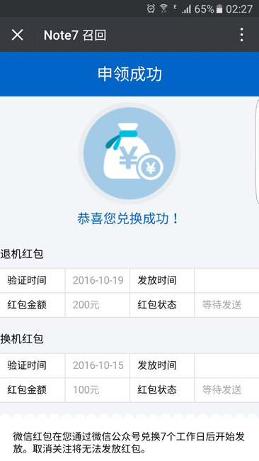 為什么note7,14號(hào)退的換了s7到今天都沒(méi)有收到紅包?