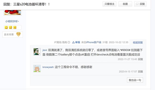 3年的s20電池循環(huán)次數(shù)清零后還挺抗造!