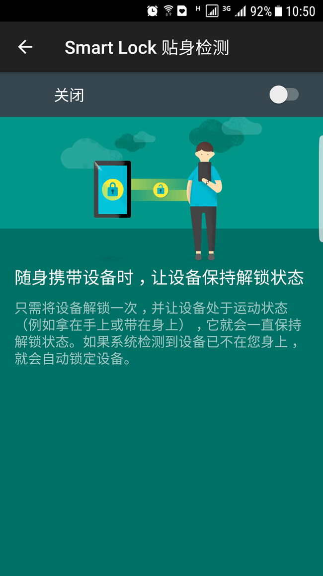 找到原因了,smartlock 貼身檢測打開了,只要手機(jī)在身上 運(yùn)動著手機(jī)就保存解鎖狀態(tài)。關(guān)了就好了