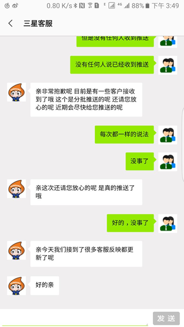 我問客服也一樣,都說已經(jīng)推送了。但誰也沒收到