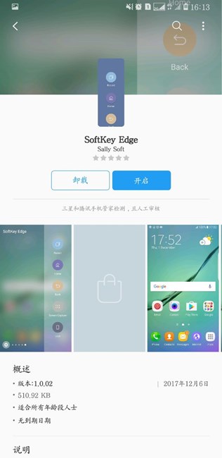 可以下載一個叫 SoftKey Edge 曲面?zhèn)绕撩姘宀寮?。?yīng)用商店搜索不到,我之前三星s7e里面下載過,然后在購買過應(yīng)用里找到的。