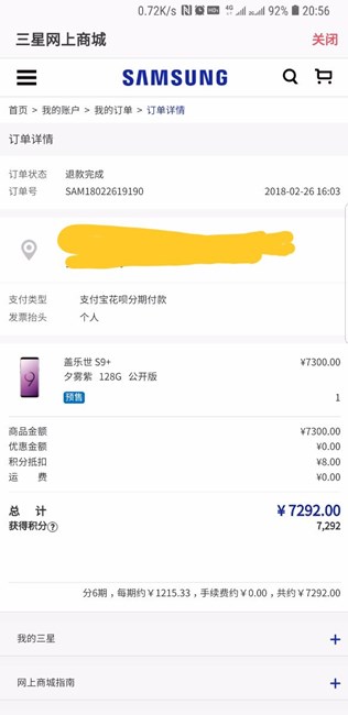 26號1:32分搶到的 S9+紫色還沒發(fā)貨 3月10號終于發(fā)貨