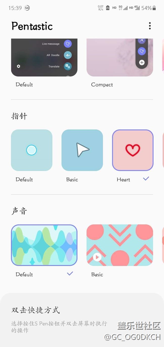 2,spen的設(shè)置變多了,(在應(yīng)用pentastic里面)可以設(shè)置指針和聲音,還加了個(gè)雙擊功能,而且現(xiàn)在浮窗指令的位置不固定了,