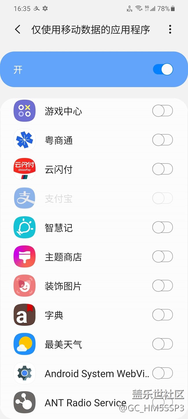支付寶被限_僅使用移動數(shù)據(jù)的應(yīng)用程序 圖片