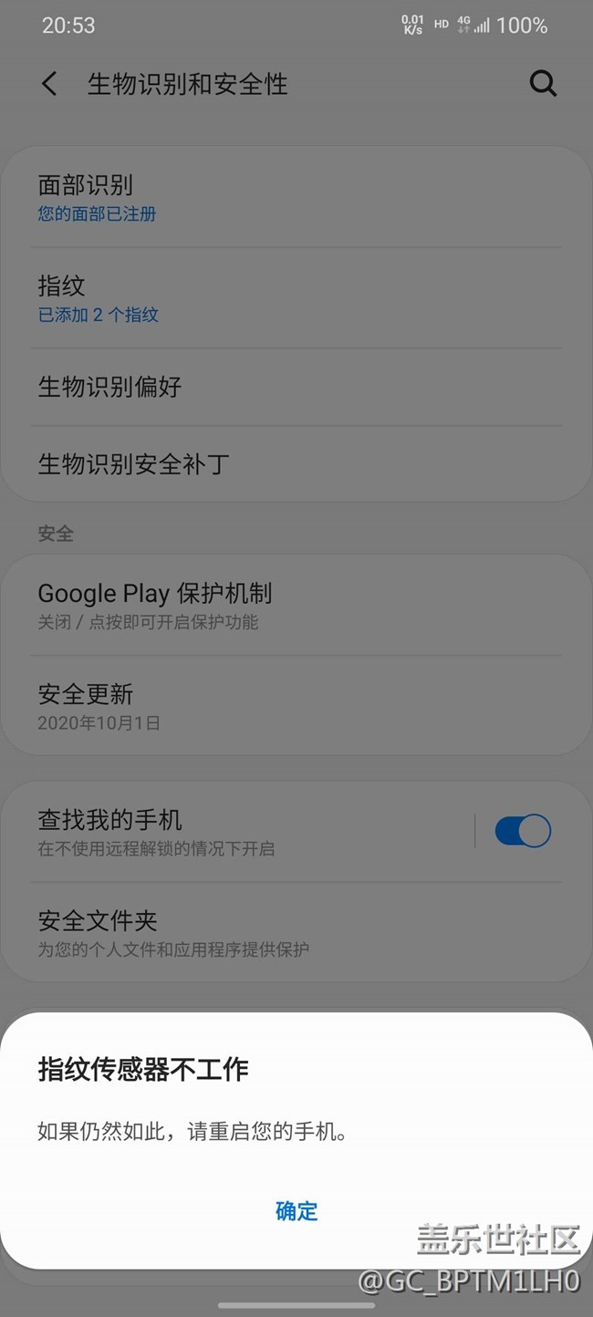 帖子標(biāo)題: S20+指紋識(shí)別器不工作