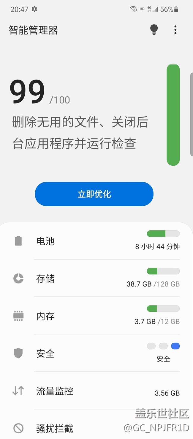 三星S20智能管理器怎么一直是99分,一直優(yōu)化也不行 圖片