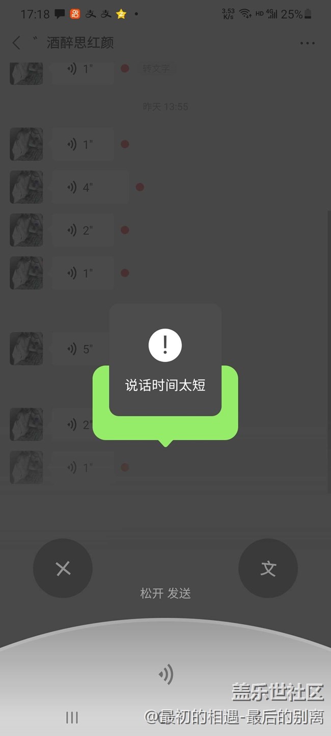 微信自動發(fā)送語音 按住語音 手沒松開屏幕自動發(fā)送的語音一秒,要么有時候手按住屏幕 手沒松開 微信提示按數(shù)時間不夠長 請問是什么問題導致的 觸屏正常 微信最新版本,現(xiàn)在影響到我正常使用 求評論 求幫助