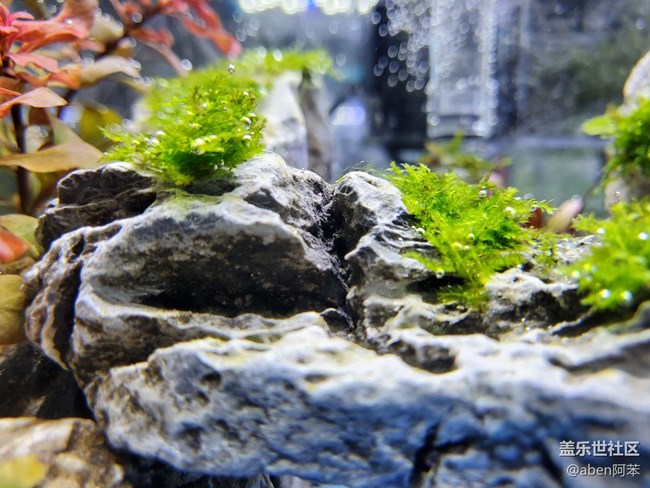 水景缸中石縫的細(xì)節(jié)清晰,放大看還可清楚的看到幾縷苔絲。