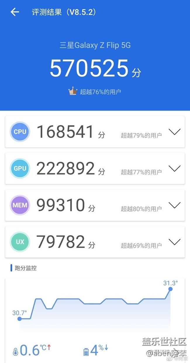 帖子標(biāo)題: 用了有一個(gè)多月的Z Flip 5G,拿來(lái)跑個(gè)分。