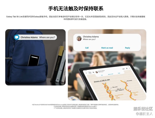 “在其它設(shè)備上接打電話和收發(fā)短信”功能,三星稱它為Call & text on other device,最早在galaxy tap s5e平板上推出,這個功能可以讓你利用三星平板接收手機消息和接聽電話,只要手機平板都有網(wǎng)絡(luò)連接就行。