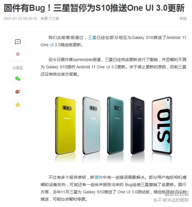 帖子名稱 三星暫停為S10推送One ui3.0更新