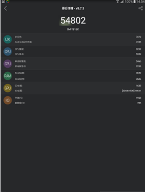 盡管Exynos 5433處理器相對(duì)于手機(jī)配置并不算高,但在平板中絕對(duì)是優(yōu)秀的配置,再配搭3GB的運(yùn)行內(nèi)存,跑分可以秒殺市面上的主流旗艦設(shè)備,實(shí)際的運(yùn)行效果非常棒,跑市面上的絕大部分主流游戲完全沒問題。