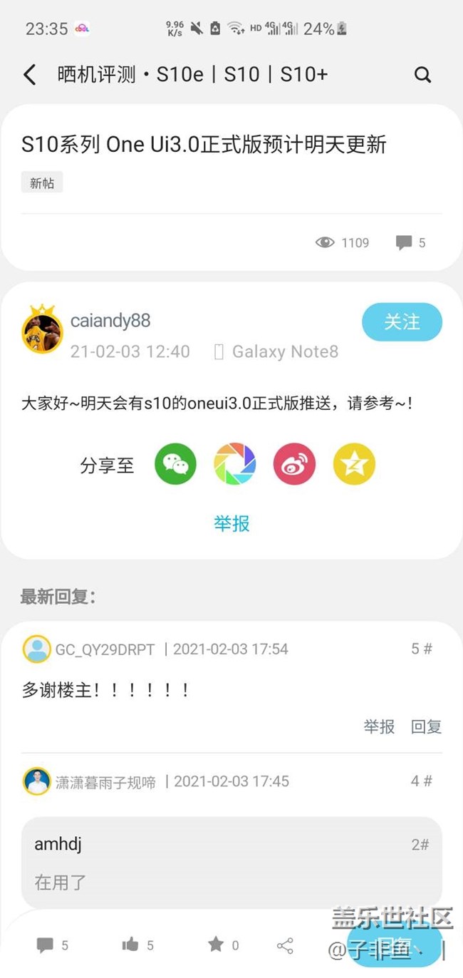 官宣:明天one ui3.0更新 圖片