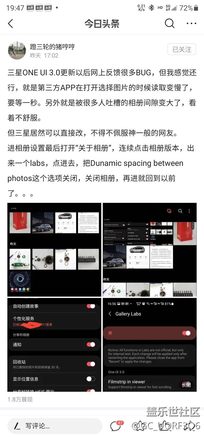 升級(jí)3.0后相冊(cè)里查看圖片之間距離有點(diǎn)大,感覺(jué)沒(méi)2.5時(shí)候好看,看到頭條上可以改回以前2.5以前圖片之間距離大小
