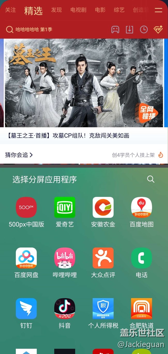 之前使用分屏功能時,以騰訊視頻為例。由于我開啟了全屏手勢,所以上劃停住以后是切換程序,這時我點擊騰訊視頻的圖標后選擇分屏顯示,騰訊視頻會自動縮到最上面一小塊,中間有個○,里面是?,點擊會關(guān)閉騰訊視頻軟件。同時屏幕下方會出現(xiàn)最近使用的四個軟件,點擊后自動分屏。需要找其他的軟件的話,上劃就會出現(xiàn)軟件列表,之前分好的文件夾都在,找軟件很方便。