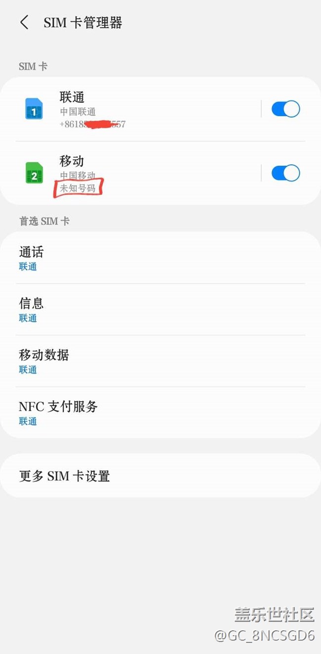 帖子名稱 卡1有號碼,卡2是未知號碼