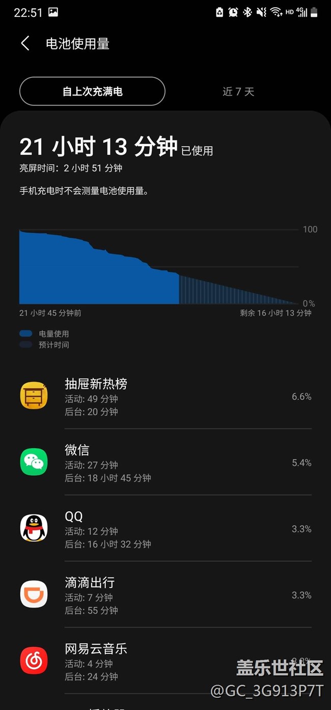 晚上待機基本耗費7個到10個點,是因為習(xí)慣用喜馬拉雅定時40分鐘聽著郭德綱入睡。直接睡的話晚上待機耗電肯定在5個以內(nèi)。