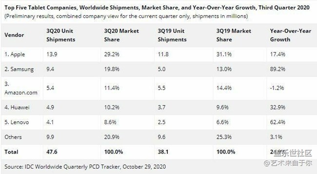 2020年,由于眾所周知的原因,大家都變成了在家遠(yuǎn)程工作或?qū)W習(xí)。因此,全球平板銷量出現(xiàn)了很大增長(將近25%,如圖3)相信擁有平板的朋友們,無論是用來大量記筆記,還是僅僅看網(wǎng)課視頻,都在一定程度上改變了自己的學(xué)習(xí)方式。