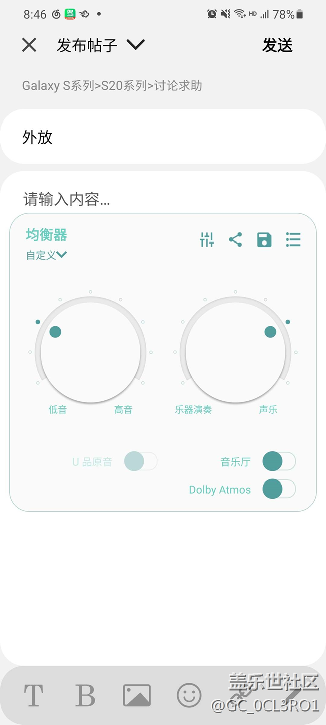 我覺得這樣設(shè)置,s20 會有出奇的低音效果和蘋果的低音有得一比,而且聲場也很不錯。設(shè)置完之后感覺聲音沒有原來這么單薄了,最重要的是低音效果真的不錯,覺得三星s20 外放沒低音的可以試試哈