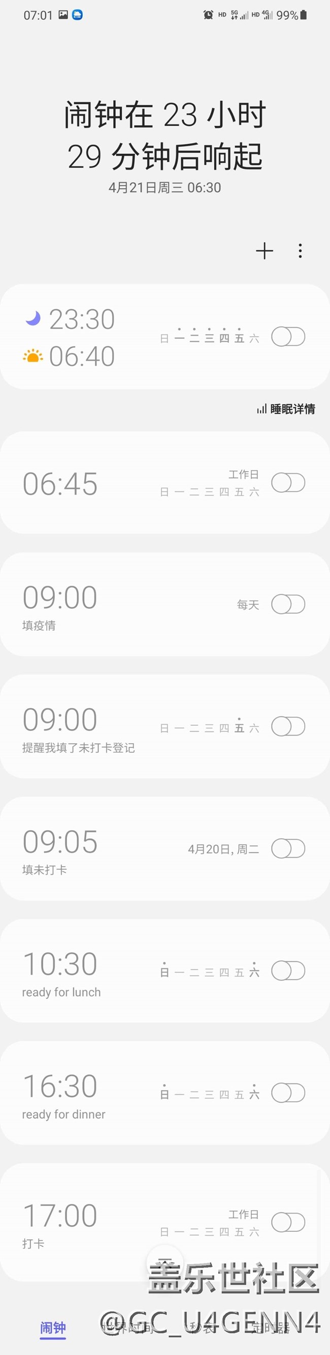 我都要蒙了,關(guān)了所有鬧鈴。還是會在次日6點(diǎn)半響。那個鬧鐘在哪呢?